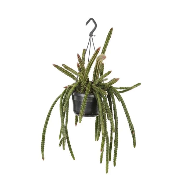 Rhipsalis monacantha is a graceful, fine-textured epiphytic cactus that brings a softer, more natural look to houseplant displays. It produces long, slender, slightly segmented stems that arch and trail elegantly over time, forming a light, cascading habit ideal for hanging baskets or high shelves.