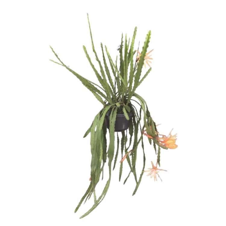 Unlike desert cacti, Rhipsalis monacantha thrives in bright, indirect light and benefits from a slightly more humid environment. It should be planted in a well-draining, airy substrate such as an epiphytic or orchid-style compost. Water moderately, allowing the top layer of compost to dry slightly between waterings, while avoiding prolonged dryness.