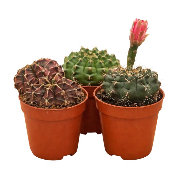 This vibrant Gymnocalycium mix brings together three distinctive and much-loved cactus species, offering a varied and visually appealing selection perfect for any indoor plant display. Combining the subtle elegance of Gymnocalycium damsii, the colourful charm of Gymnocalycium mihanovichii, and the refined form of Gymnocalycium horstii, this mix creates a balanced and popular collection with plenty of character.