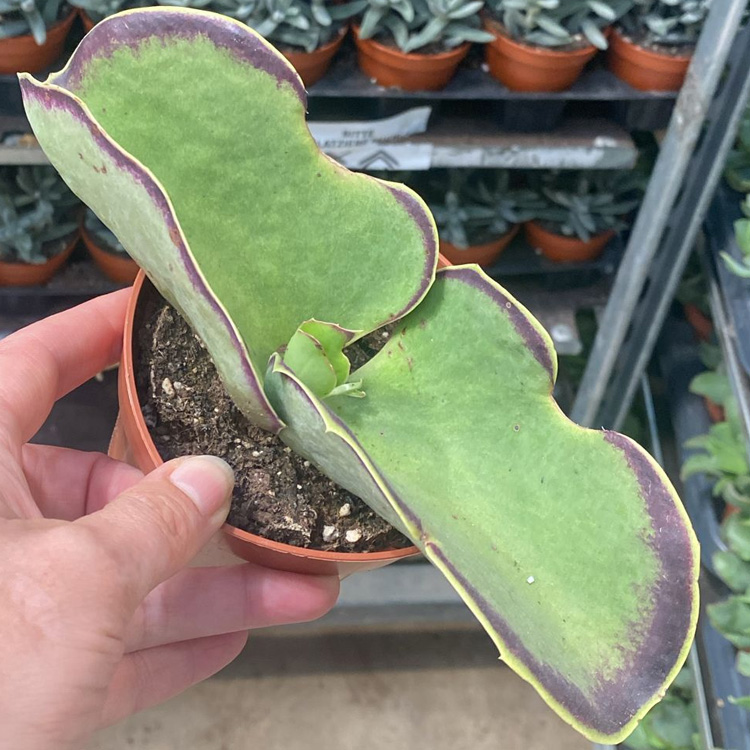 This plant thrives best in bright, indirect light but can tolerate some direct sunlight, which may enhance the colour of its leaves. It prefers well-draining soil, ideally a succulent or cactus compost, and should be watered sparingly—allowing the soil to dry out thoroughly between waterings to avoid root rot. Feeding is not usually necessary, but a light feed during the active growing season will support healthy development.Kalanchoe synsepala is perfect for windowsills, desks, or mixed succulent arrangements and is well-suited to indoor environments where warmth and light are consistent.