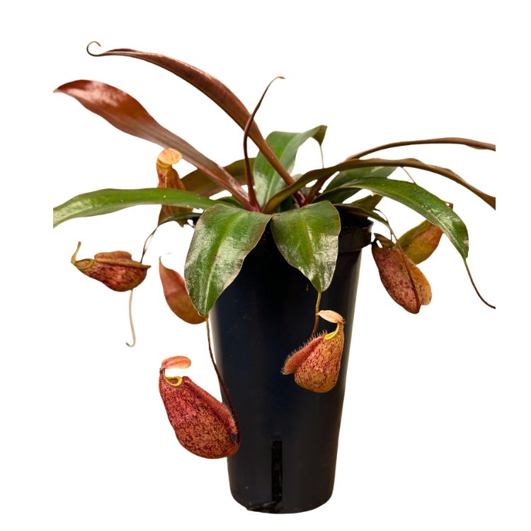 The plant produces elegant foliage with tendrils that develop into well-defined pitchers, often showing warm red and bronze tones. These pitchers function as natural insect traps, providing the plant with its nutritional requirements and adding strong customer interest at point of sale. Nepenthes ‘Suki’ maintains an attractive appearance over a long period, making it suitable for extended bench life.