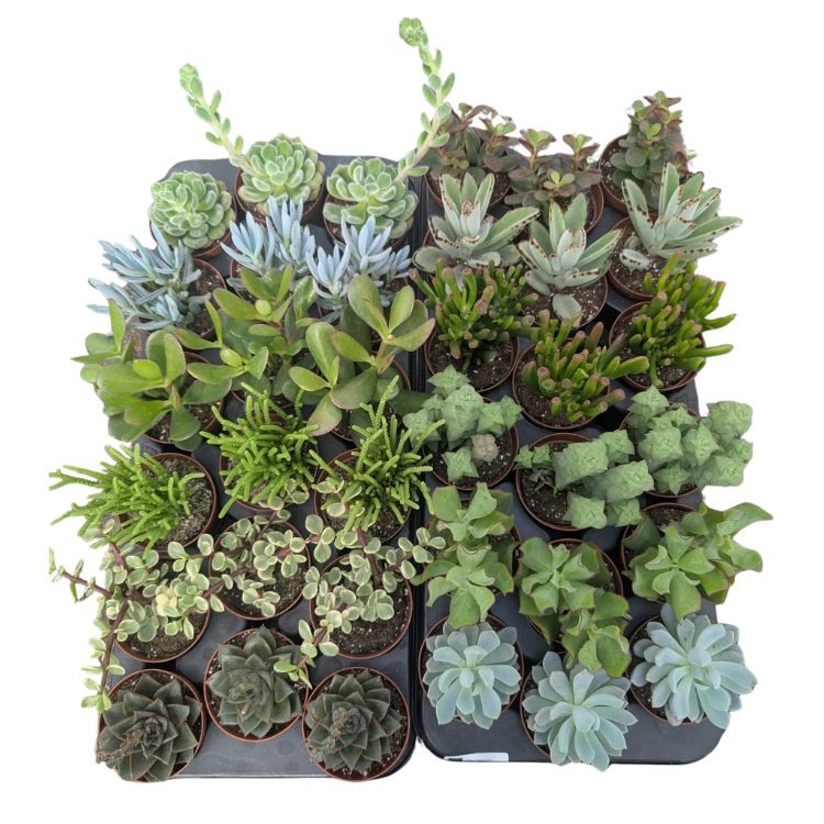 From compact rosettes and architectural forms to fleshy leaves and patterned varieties, this mix creates an attractive and versatile display suitable for a wide customer base. The variation within each batch ensures visual interest and encourages impulse purchases, making it ideal for retail environments.